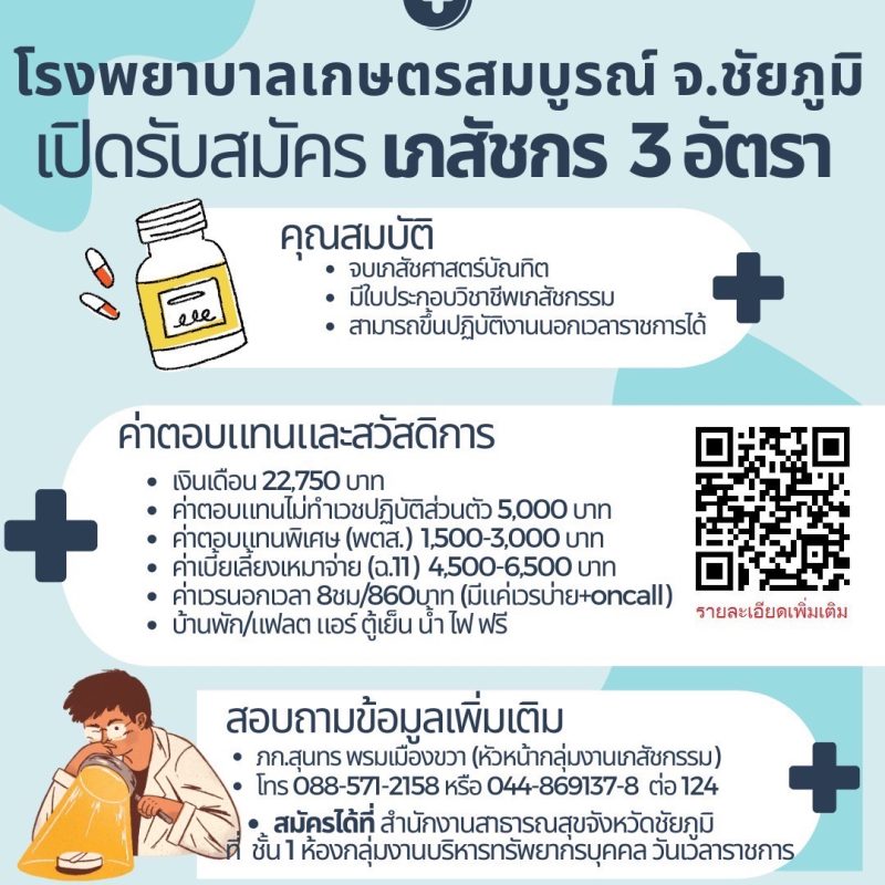 โรงพยาบาลเกษตรสมบูรณ์ จังหวัดชัยภูมิ เปิดรับสมัคร เภสัชกร 3 อัตรา >>>รายละเอียด<<<