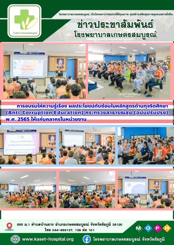 อบรมให้ความรู้เรื่องผลประโยชน์ทับซ้อนในหลักสูตรต้านทุจริตศึกษา (Anti-Corruption Education) กระทรวงสาธารณสุข (ฉบับปรับปรุง) พ.ศ. 2565 ให้แก่บุคลากรในหน่วยงาน