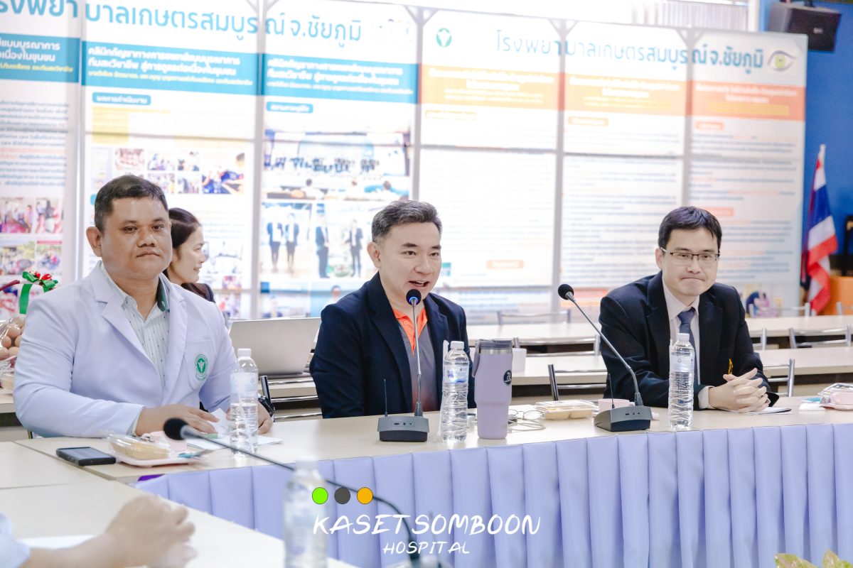 นายแพทย์กฤษดา ศิริภูมิ ผู้อำนวยการโรงพยาบาลเกษตรสมบูรณ์พร้อมคณะเจ้าหน้าที่ ร่วมต้อนรับ อ.นพ. ดร.บัณฑิต อัศวฤทธิไกร รองคณบดีฝ่ายวิชาการ คณะแพทย์ศาสตร์ มทส. และคณะ เพื่อวางแผนเตรียมรับนกศึกษาแพทย์ที่จะมาฝึกงานระบบPrimary careในโครงการ “แทนคุณบ้านเกิด”