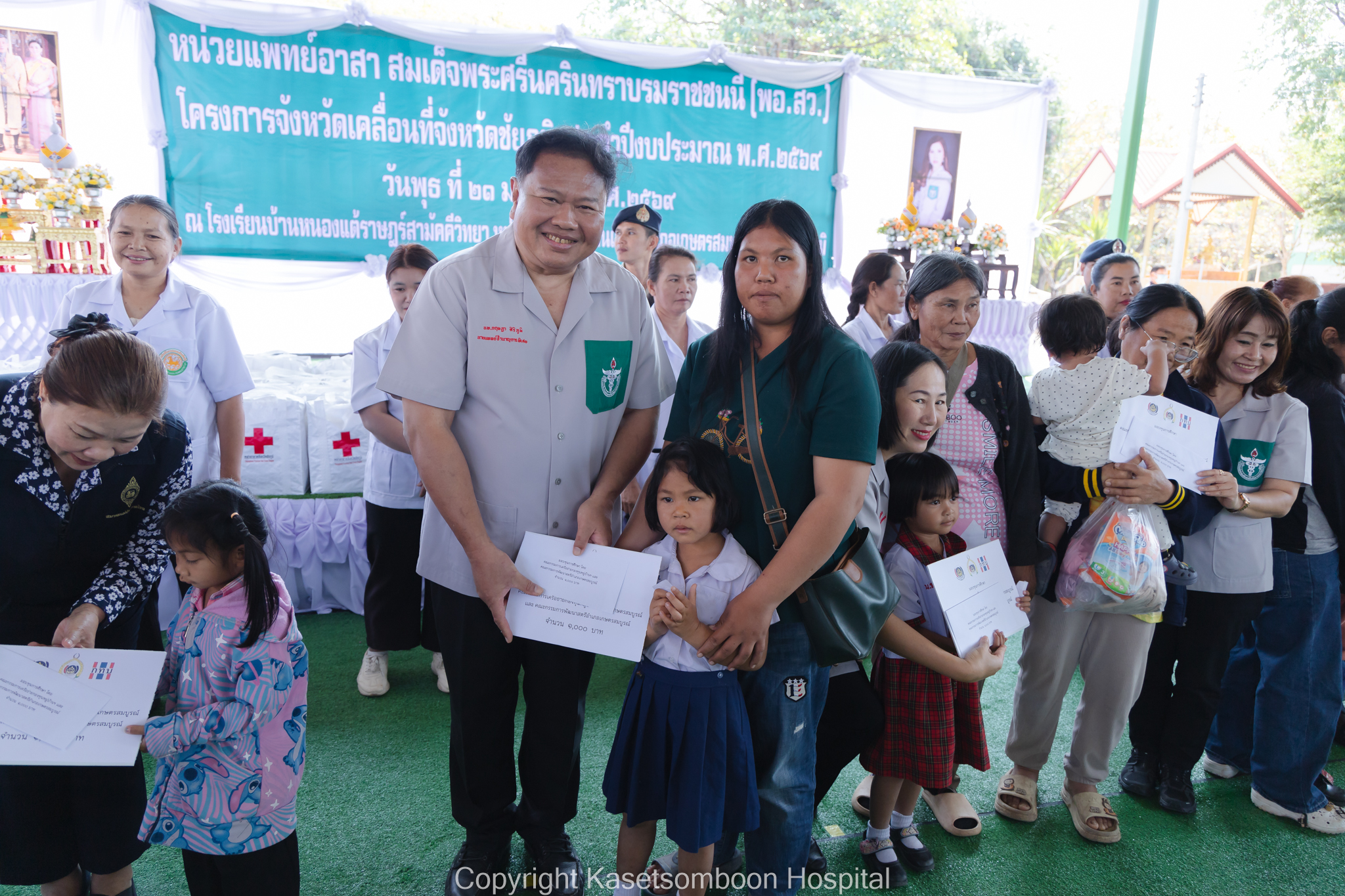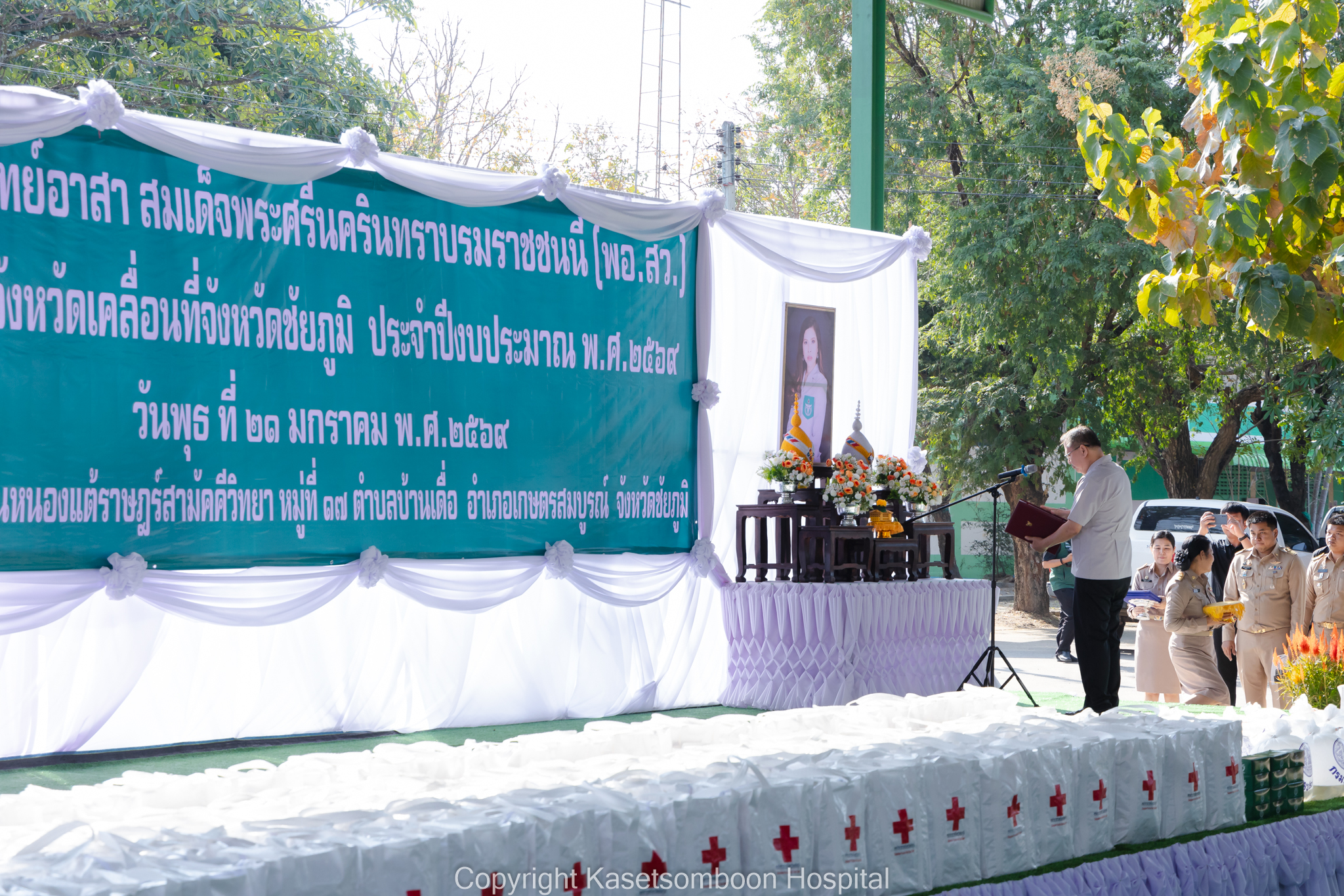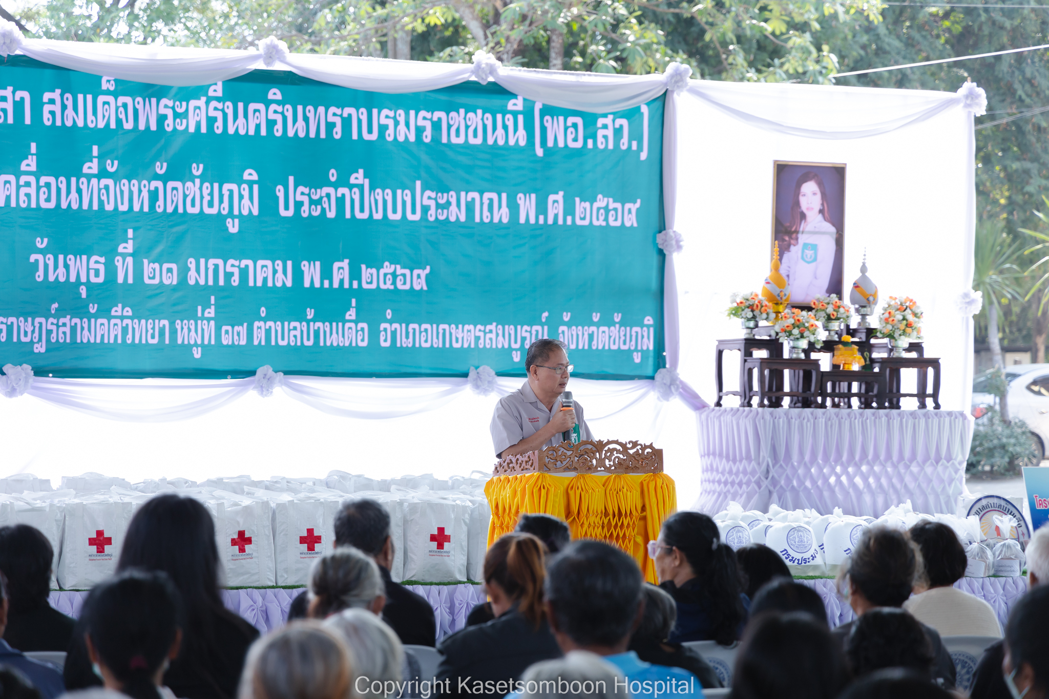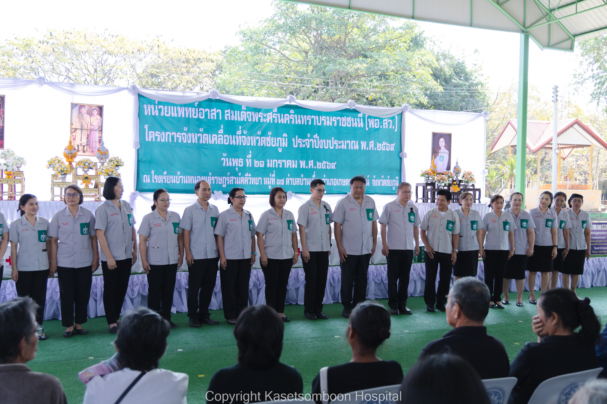 นายธงชัย โอฬารพัฒนะชัย รองผู้ว่าราชการจังหวัดชัยภูมิ เป็นประธานเปิดกิจกรรมหน่วยแพทย์เคลื่อนที่พอ.สว. จังหวัดชัยภูมิ ร่วมกับโครงการจังหวัดเคลื่อนที่จังหวัดชัยภูมิ ณ โรงเรียนบ้านแต้ราษฎร์สามัคคีวิทยา หมู่ที่ 5 ตำบลบ้านเดื่อ อำเภอเกษตรสมบูรณ์ จังหวัดชัยภูมิ โดยมีนายแพทย์กฤษฎา ศิริภูมิ ผู้อำนวยการโรงพยาบาลเกษตรสมบูรณ์ ผู้แทนนายแพทย์สาธารณสุขจังหวัดชัยภูมิ กล่าวรายงานวัตถุประสงค์การจัดกิจกรรมหน่วยแพทย์เคลื่อนที่ พอ.สว. ร่วมกับโครงการจังหวัดเคลื่อนที่จังหวัดชัยภูมิ และนายเสกสรร สวัสดิ์ศรี นายอำเภอเกษตรสมบูรณ์ กล่าวต้อนรับ มีประชาชนเข้ารับบริการหน่วยแพทย์ พอ.สว. จำนวน 428 ราย โดยมีรายละเอียดดังนี้