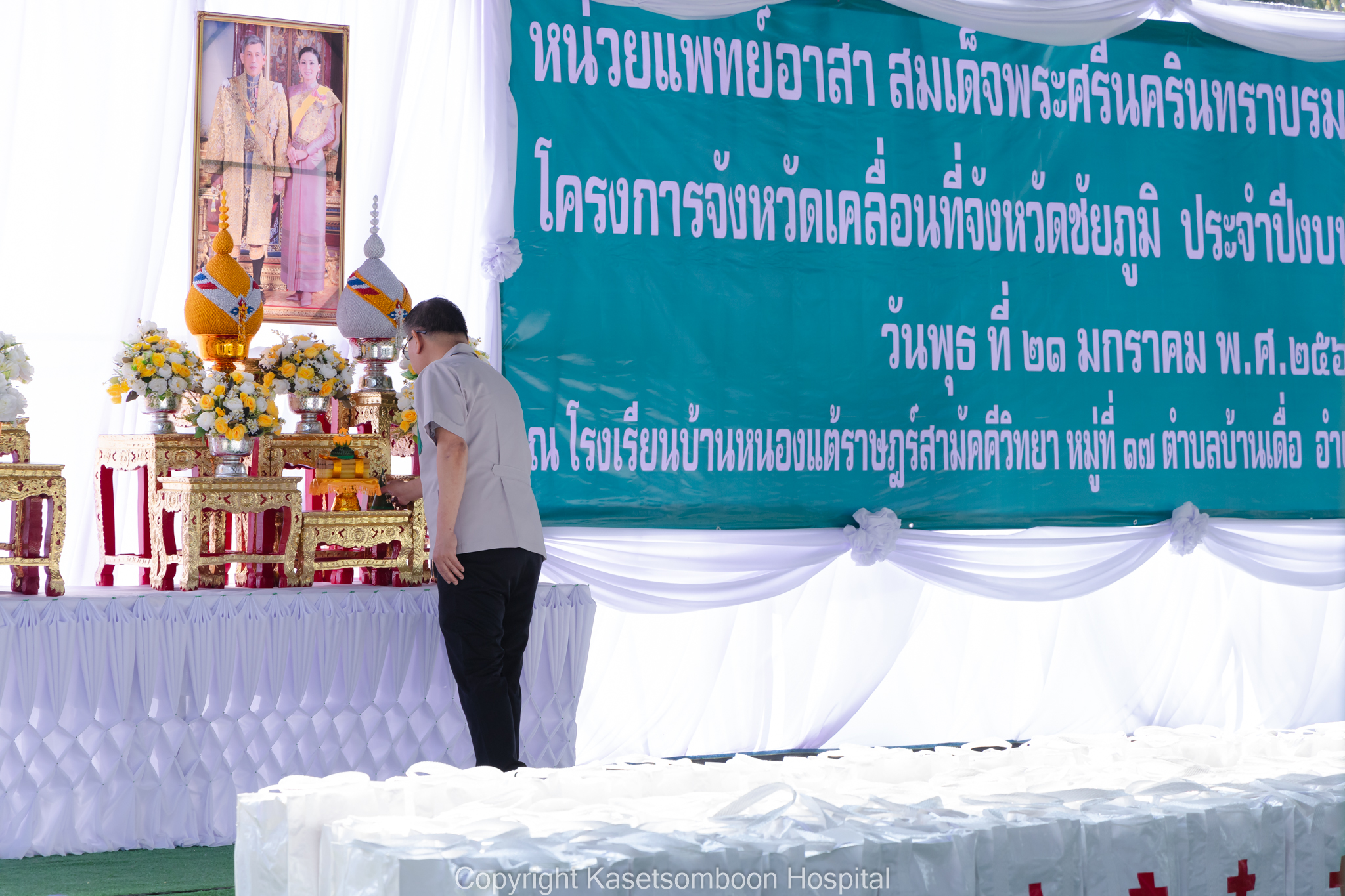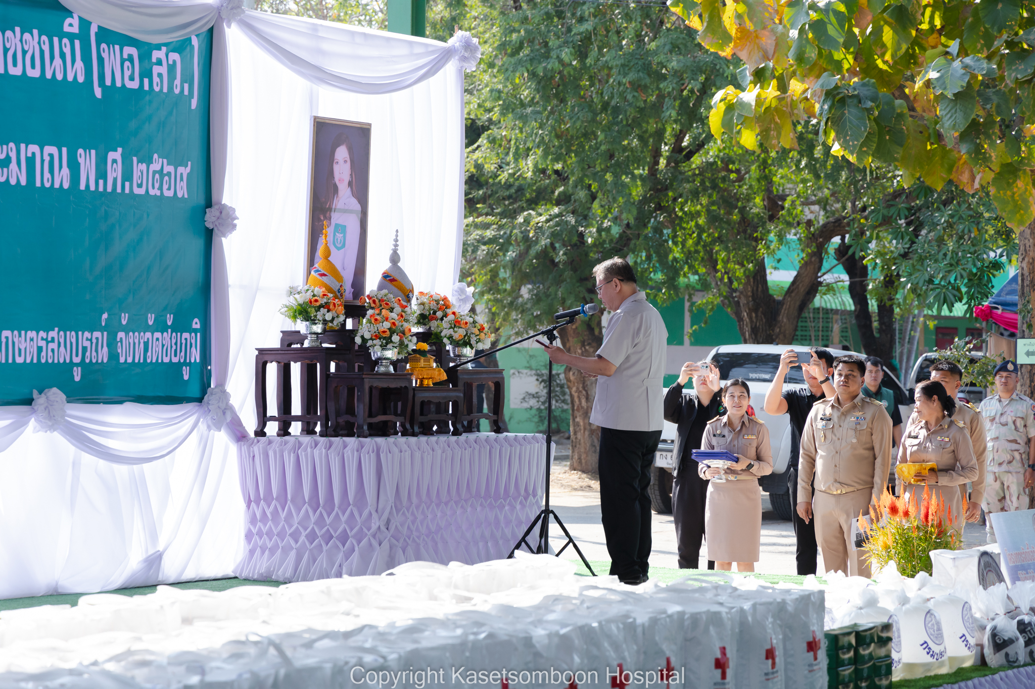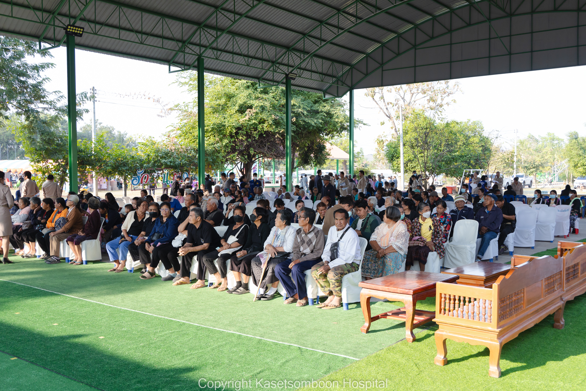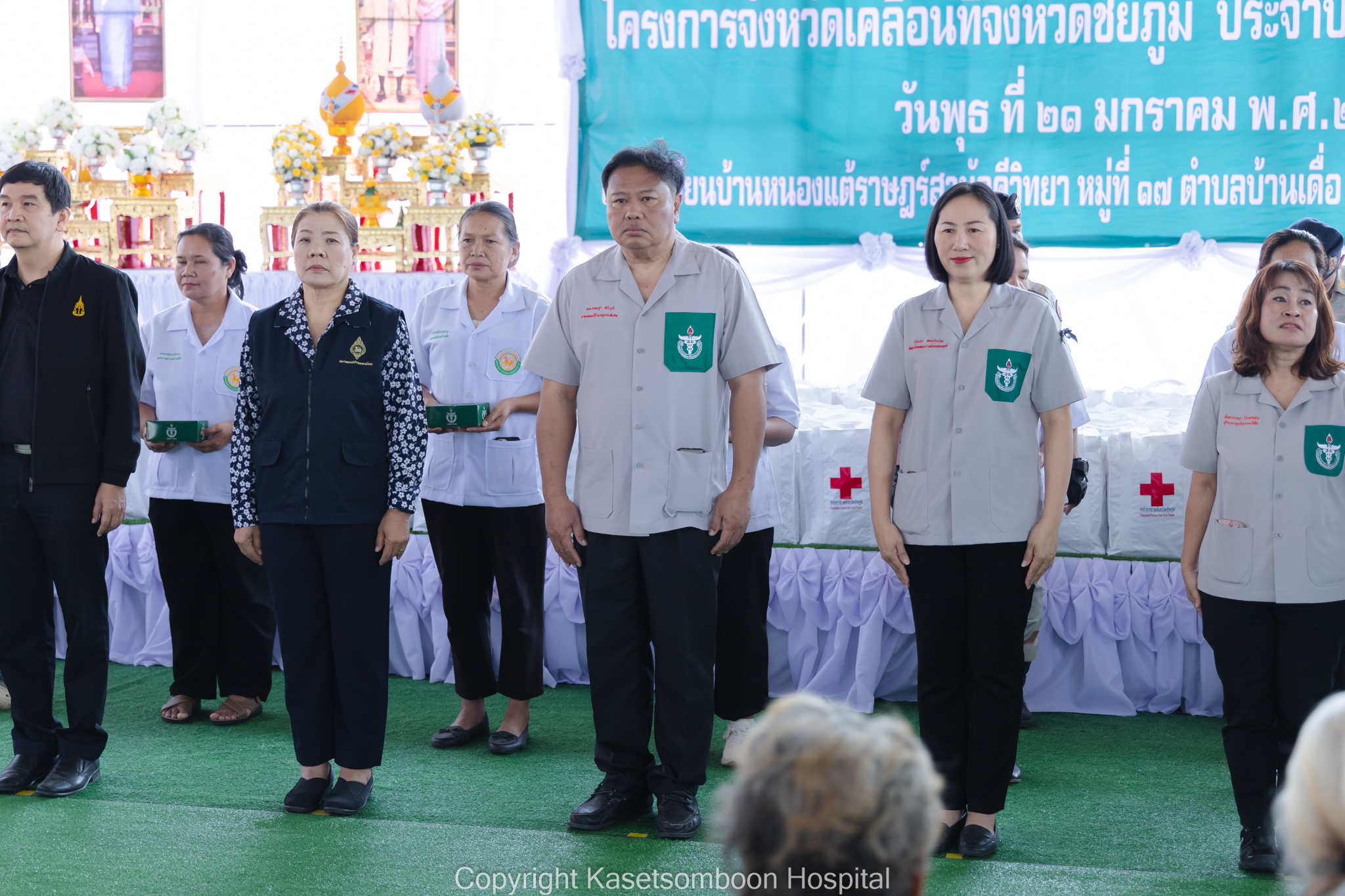 นายธงชัย โอฬารพัฒนะชัย รองผู้ว่าราชการจังหวัดชัยภูมิ เป็นประธานเปิดกิจกรรมหน่วยแพทย์เคลื่อนที่พอ.สว. จังหวัดชัยภูมิ ร่วมกับโครงการจังหวัดเคลื่อนที่จังหวัดชัยภูมิ ณ โรงเรียนบ้านแต้ราษฎร์สามัคคีวิทยา หมู่ที่ 5 ตำบลบ้านเดื่อ อำเภอเกษตรสมบูรณ์ จังหวัดชัยภูมิ โดยมีนายแพทย์กฤษฎา ศิริภูมิ ผู้อำนวยการโรงพยาบาลเกษตรสมบูรณ์ ผู้แทนนายแพทย์สาธารณสุขจังหวัดชัยภูมิ กล่าวรายงานวัตถุประสงค์การจัดกิจกรรมหน่วยแพทย์เคลื่อนที่ พอ.สว. ร่วมกับโครงการจังหวัดเคลื่อนที่จังหวัดชัยภูมิ และนายเสกสรร สวัสดิ์ศรี นายอำเภอเกษตรสมบูรณ์ กล่าวต้อนรับ มีประชาชนเข้ารับบริการหน่วยแพทย์ พอ.สว. จำนวน 428 ราย โดยมีรายละเอียดดังนี้